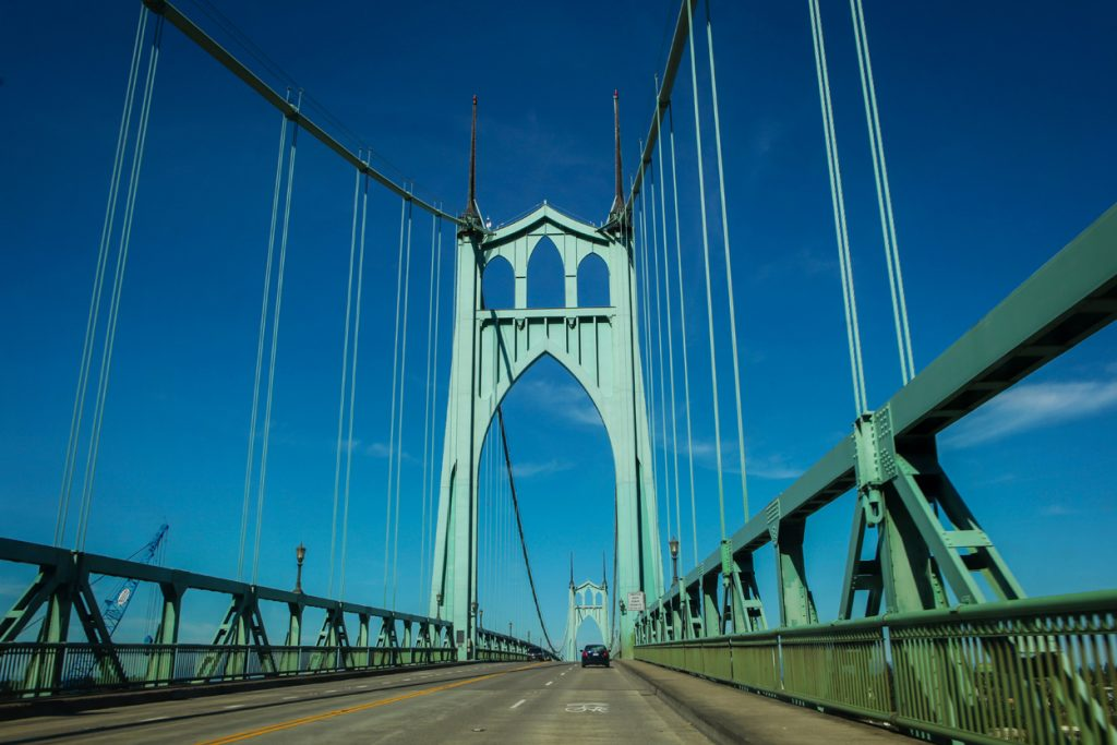 The bridge has a 1,207-foot (368 m) center span and a total length of 2,067 feet (630 m). It is the tallest bridge in Portland, with two 400-foot-tall (120 m) towers and a 205-foot (62 m) navigational clearance. The adjacent park and neighborhood of Cathedral Park are named after the Gothic arch design of the bridge's towers and supports.